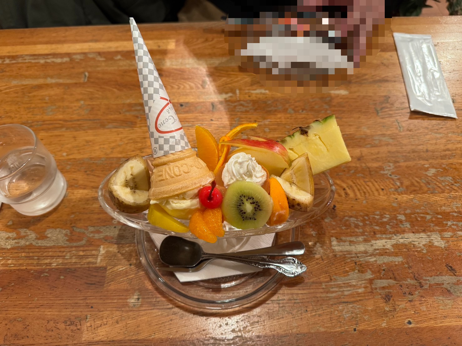 プリンが埋もれるほどのフルーツ!僕好みのレトロカスタードプリン!これぞプリンアラモード!期待以上のおいしさでした