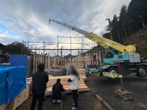 早速ですが、先日養父市のお施主様の建前を行いました。