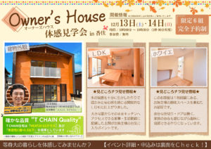 Owner’s House体感見学会 開催のご案内です。